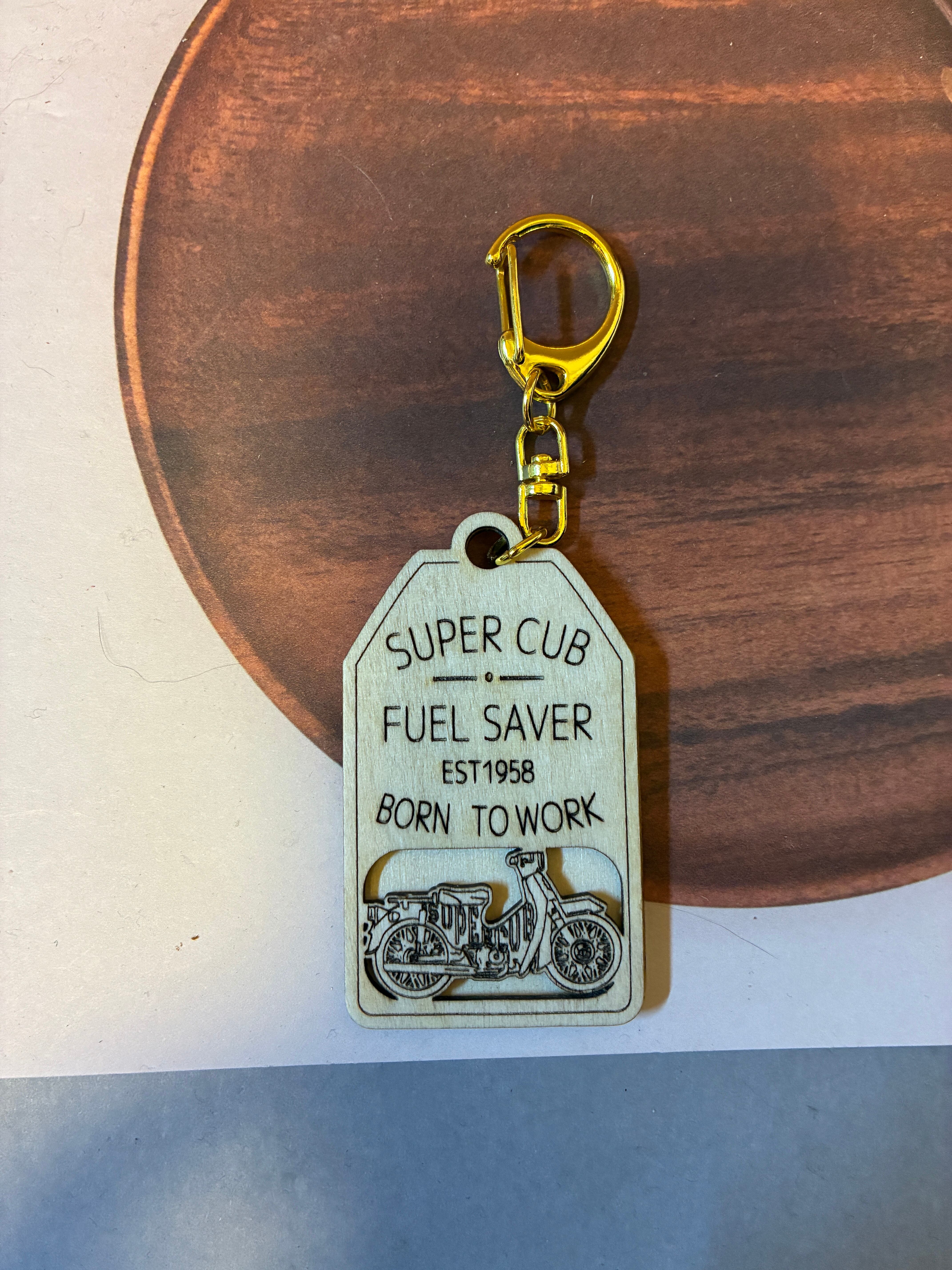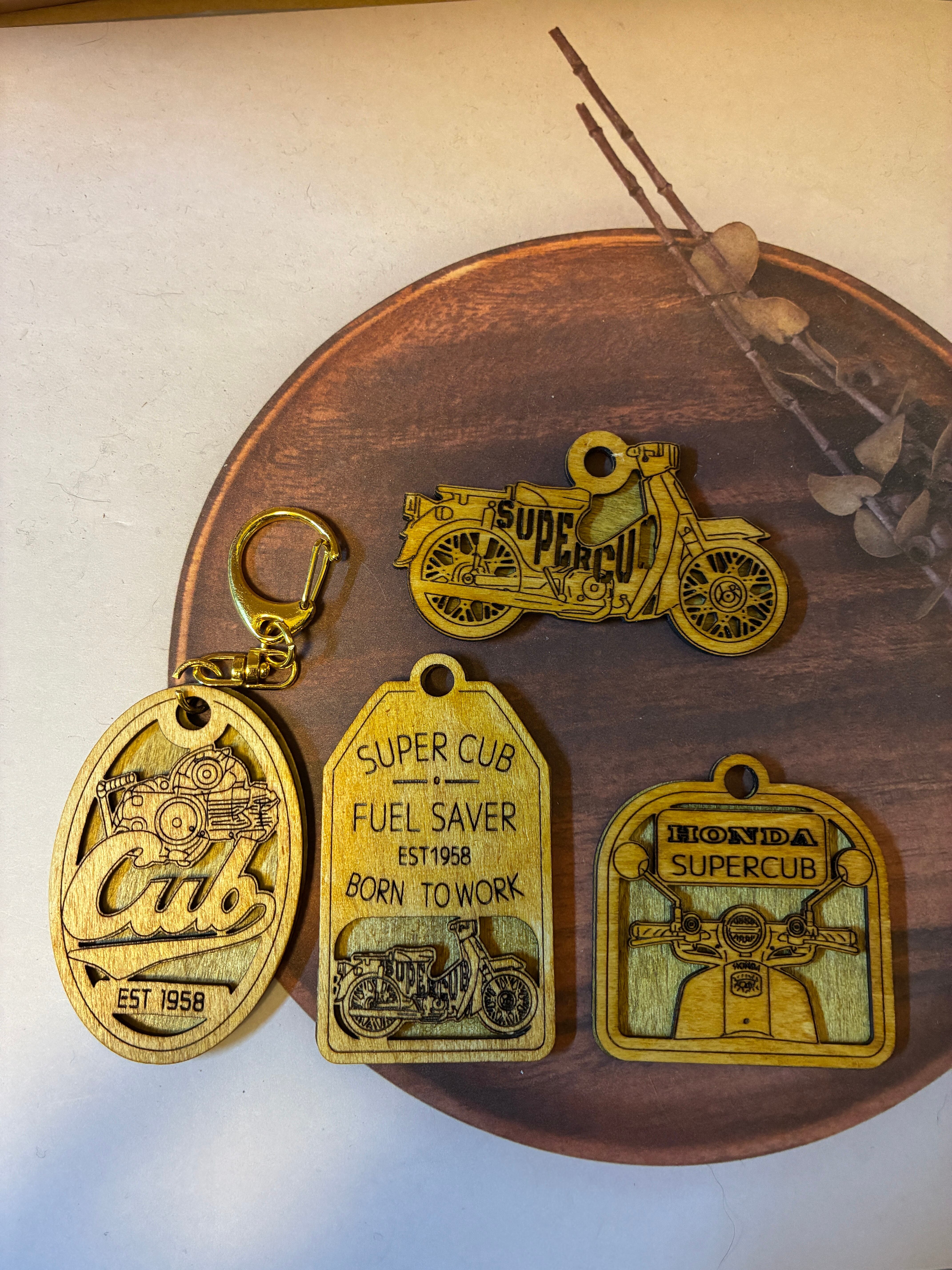 【名入れ無料】ホンダ スーパーカブ 木製キーホルダー レーザー加工カブ主 記念 ギフト オリジナル